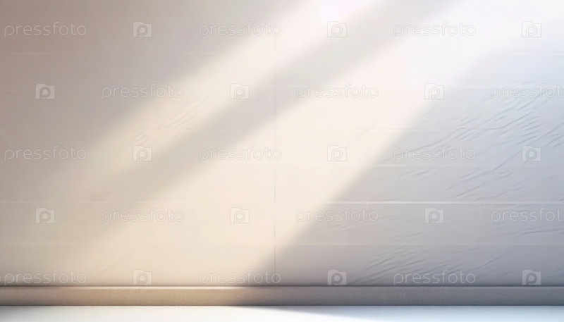 Пустая минималистическая стена с мягким естественным светом бросает тени, создавая спокойную и безмятежную атмосферу