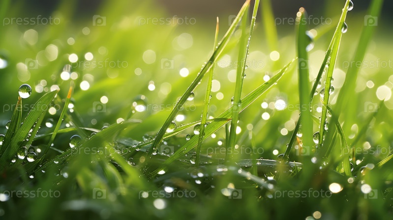 Осторожный взгляд на поцелованные росой листья трав, с каплями воды, прилипающими к поверхности