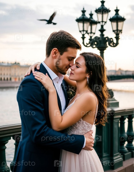 Пара влюбленных, мальчик и девочка, на набережной под лампой