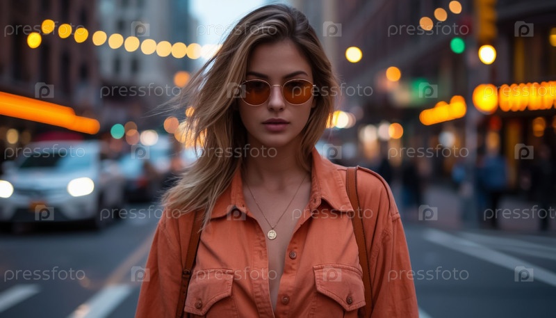 Молодая женщина в городе, солнечный свет, лето