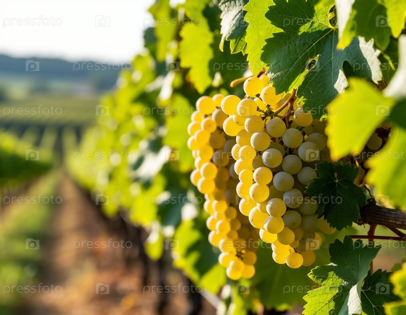 Кластеры белого винограда в винограднике на близком расстоянии Сельское хозяйство и винное производство Генерация ИИ