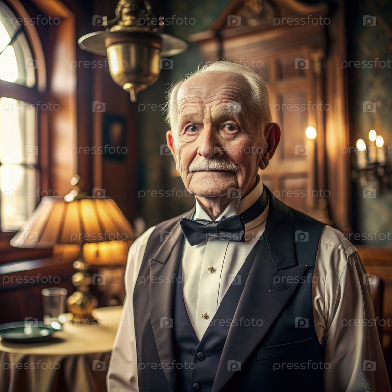 Пожилой мужчина в жилете с галстуком-бабочкой