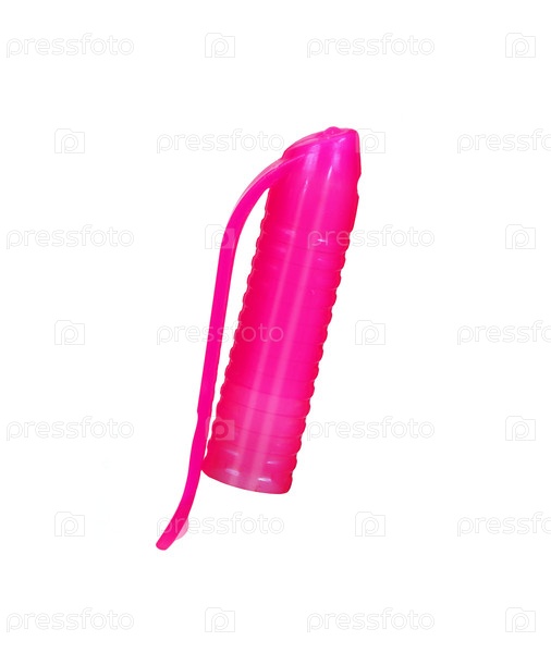 Розовый пластмассовый колпачок шариковой ручки изолированный на белом фоне