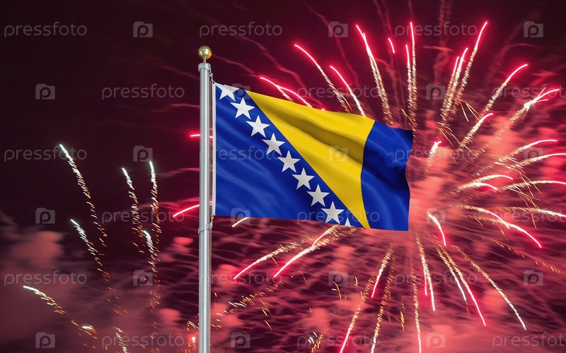 AI генеративный Национальный флаг Независимости государства Босния и Герцеговина, фон с фейерверком