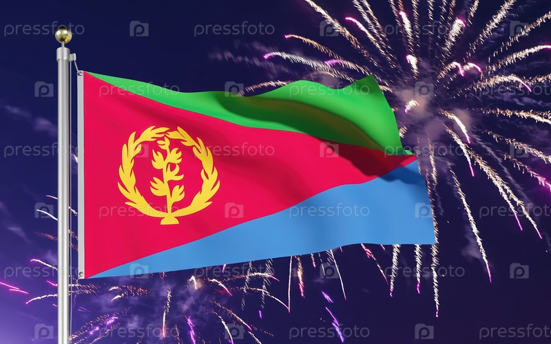 AI generative Флаг национальной независимости Эритреи, фоновый фейерверк
