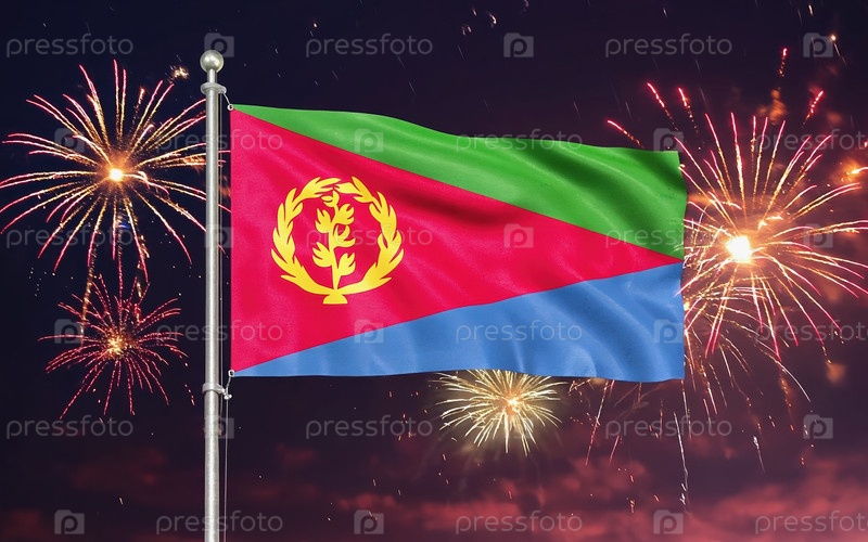 AI generative Флаг национальной независимости Эритреи, фоновый фейерверк