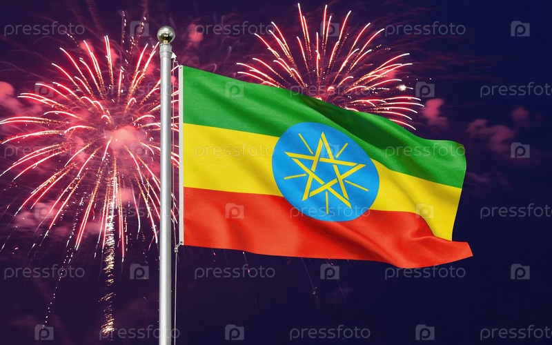 Генеративный флаг национальной независимости Эфиопии, фоновый фейерверк