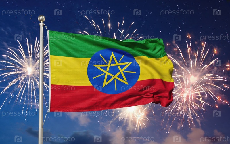 Генеративный флаг национальной независимости Эфиопии, фоновый фейерверк
