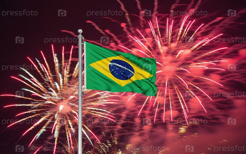 ИИ генеративный Национальный флаг Независимости Бразилии, фон с фейерверком