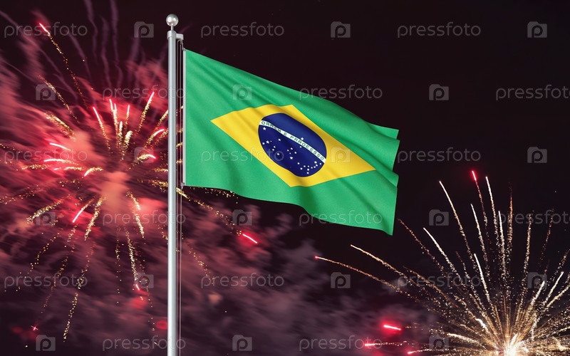 ИИ генеративный Национальный флаг Независимости Бразилии, фон с фейерверком