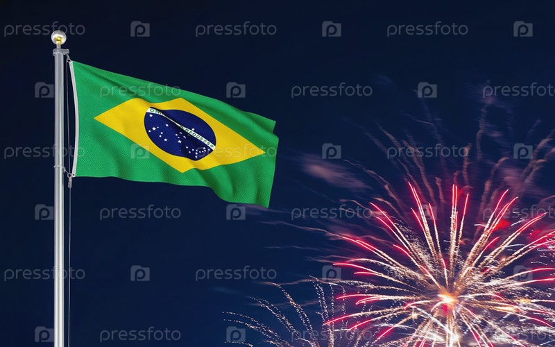 ИИ генеративный Национальный флаг Независимости Бразилии, фон с фейерверком