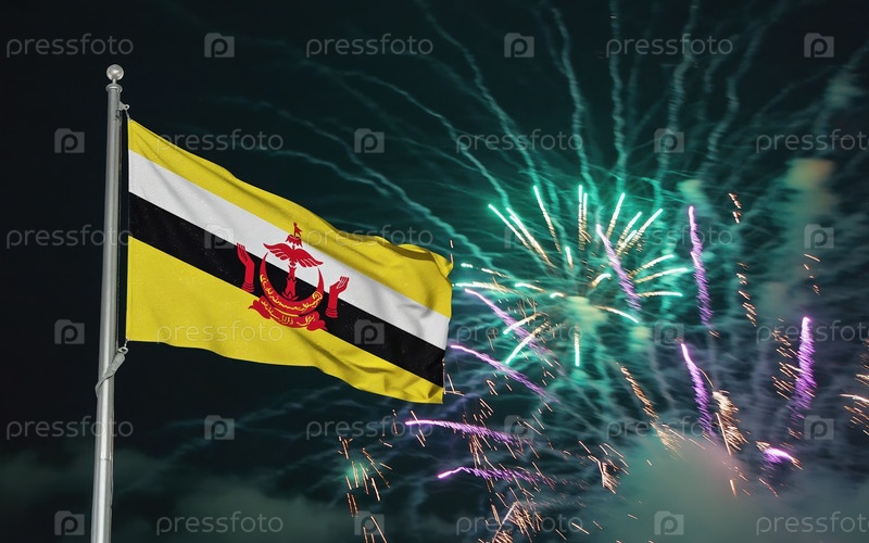 ИИ генеративный национальный флаг независимости Брунея, фон с фейерверком