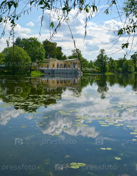Царицынский павильон у Ольгинского пруда, Петродворец (Петергоф, Санкт-Петербург, Россия), летняя слава, зеркальное изображение
