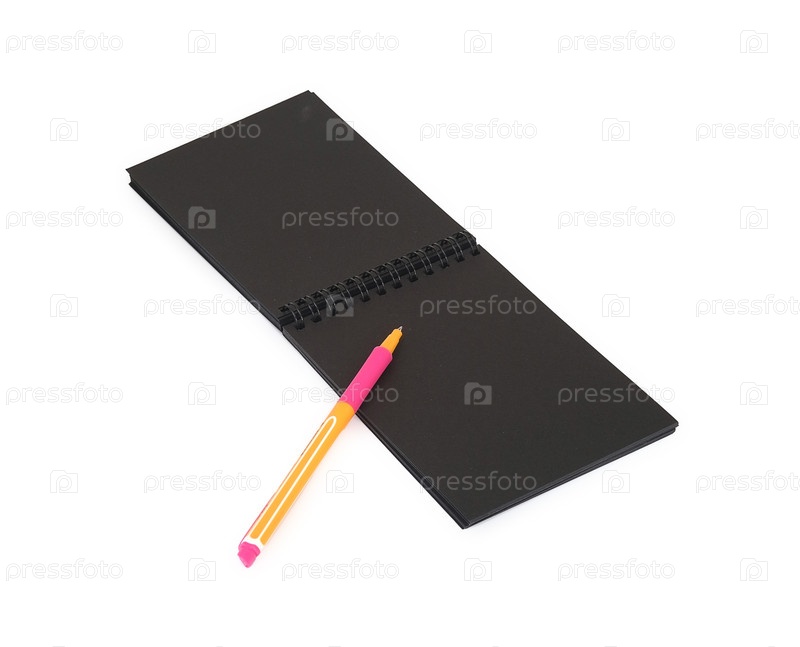 Черный блокнот и шариковая ручка изолированы на белом фоне