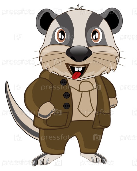 Животный барсук в костюме на белом фоне изолирован