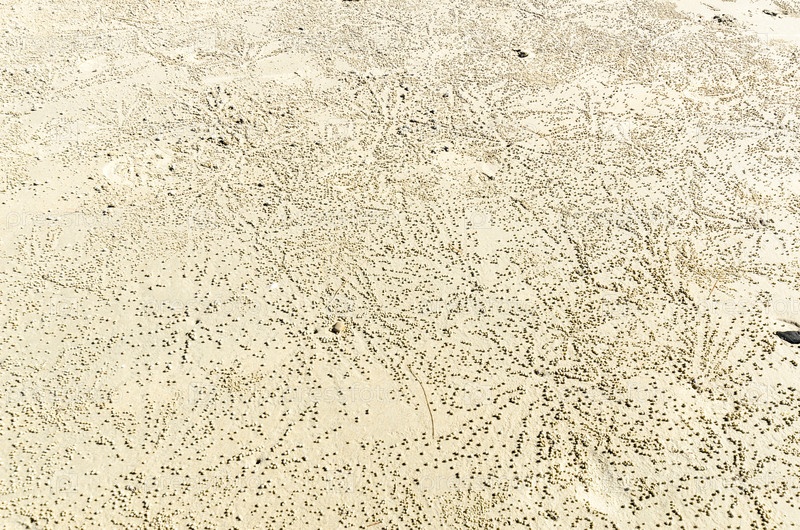 Песчаный пляж с следами крабов в Южном Таиланде