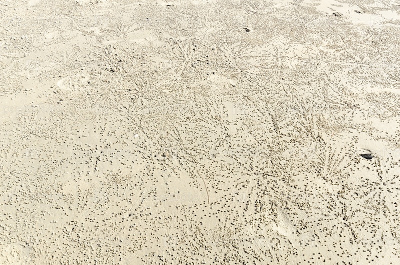 Песчаный пляж с следами крабов в Южном Таиланде