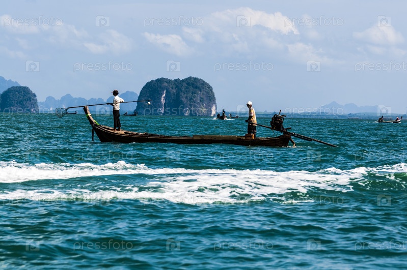 Традиционная тайская лодка с длинным хвостом в Андаманском море