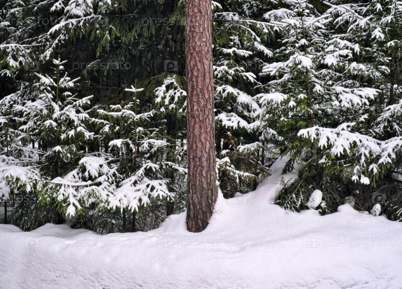 Хороший вид на холодный зимний лес со снегом и заснеженными деревьями