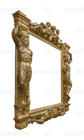 Золотая рама для картин, зеркал или фотографий изолирована на белом фоне