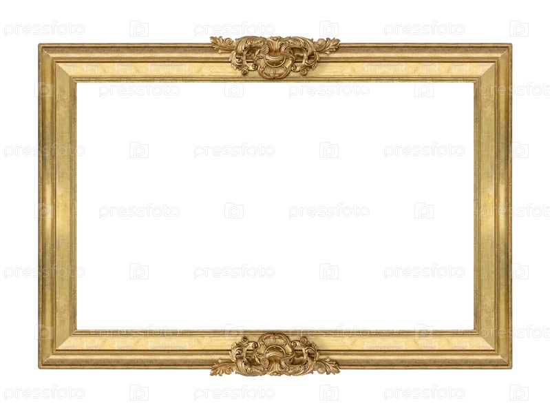 Золотая рама для картин, зеркал или фотографий, изолированных на белом фоне