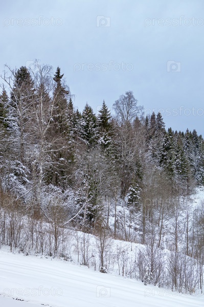 Хороший вид на холодный зимний лес со снегом и заснеженными деревьями