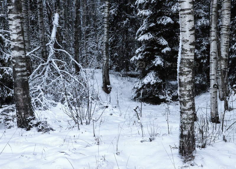 Хороший вид на холодный зимний лес со снегом и заснеженными деревьями