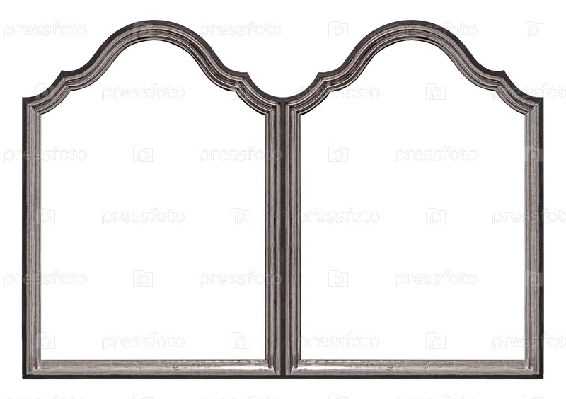 Двойная готическая серебряная рама (диптих) для картин, зеркал или фотографий, выделенных на белом фоне