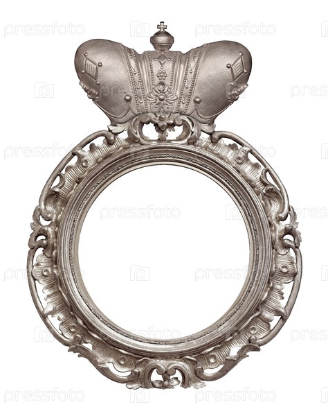 Круглая серебряная рама с короной для картин, зеркал или фотографий, изолированных на белом фоне