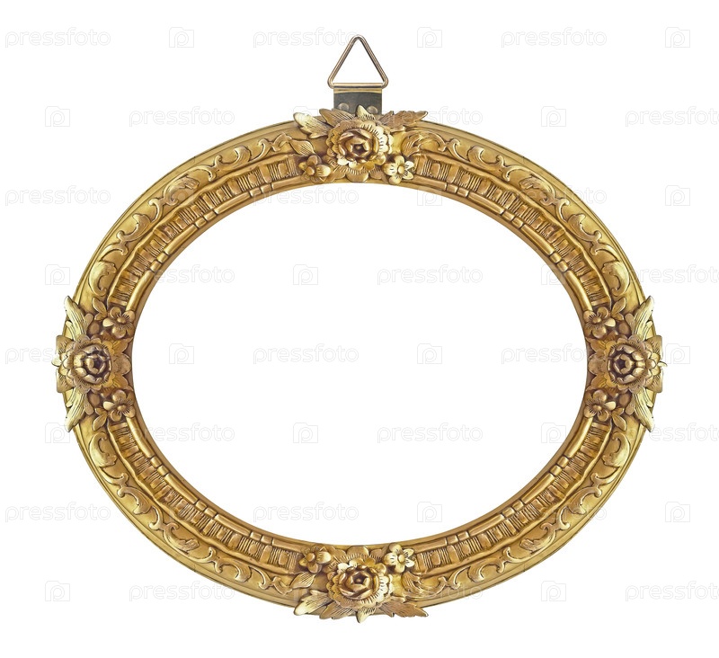 Золотая овальная рама для картин, зеркал или фотографий, изолированных на белом фоне