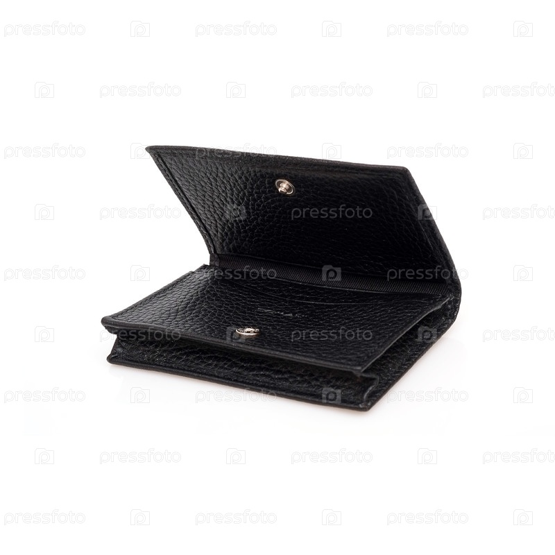 Держатель визитных карточек с черной кожей, изолированный на чёрном фоне