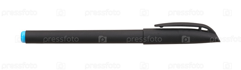 Черная шариковая ручка с крышкой изолирована на белом фоне