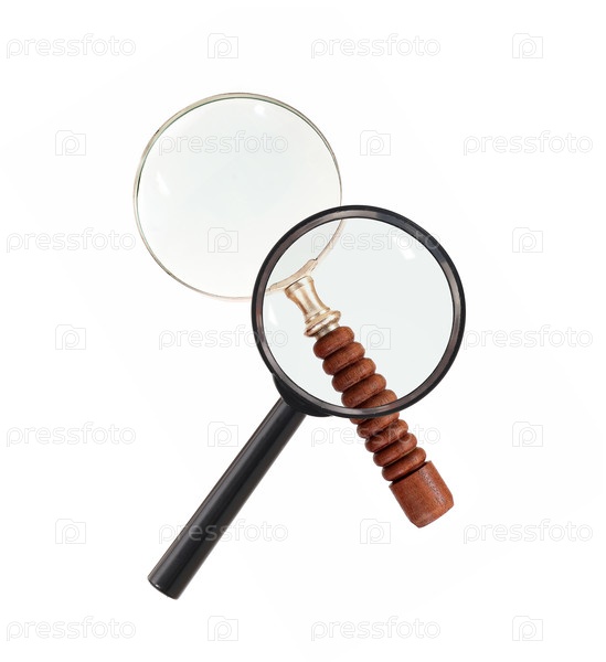 Черное увеличительное стекло (увеличитель), изолированное на белом фоне