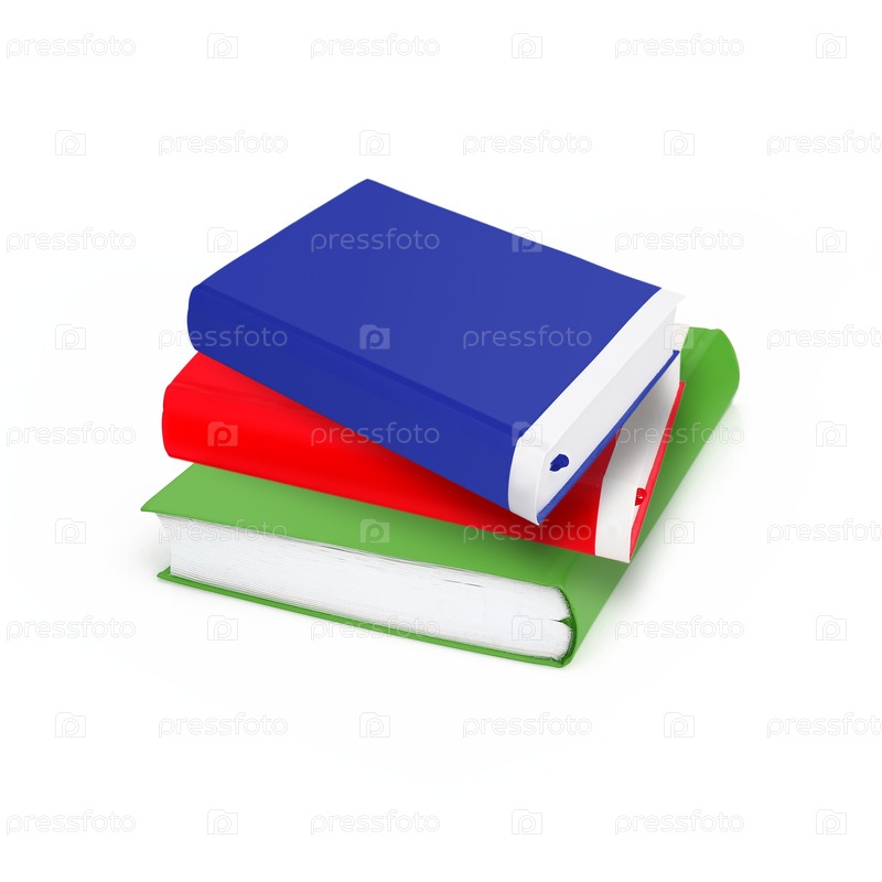 Куча книг в цветных обложках с белыми листами, изолированными на белом фоне