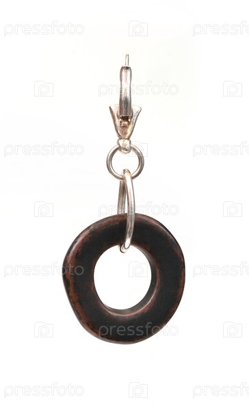 Серебряная серьга с драгоценным деревом, изолированное на белом фоне