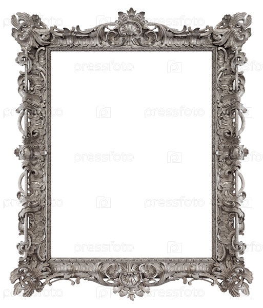 Серебряная рама для картин, зеркал или фотографий, изолированных на белом фоне