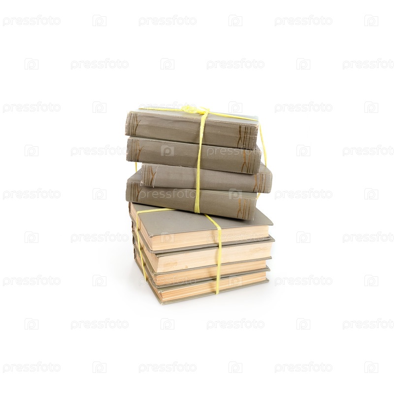 Куча книг в цветных обложках с белыми листами, изолированными на белом фоне