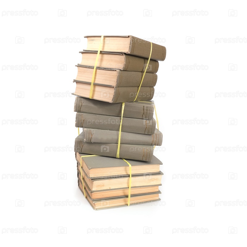 Куча книг в цветных обложках с белыми листами, изолированными на белом фоне