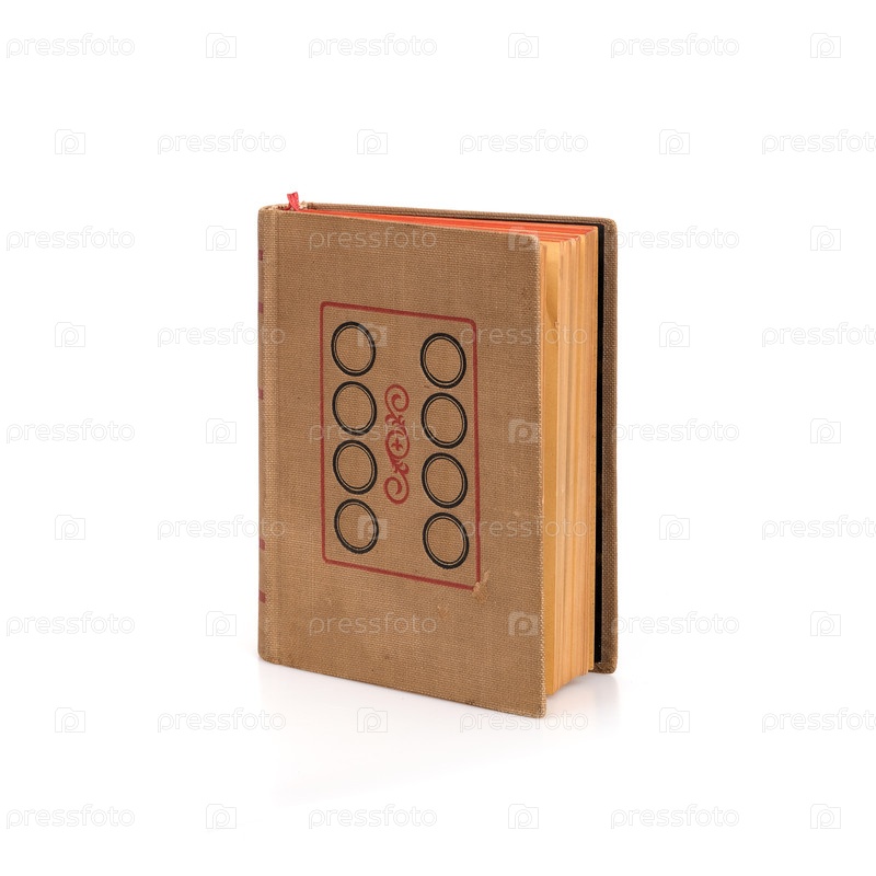Книга в цветной обложке с белыми листами, изолированными на белом фоне