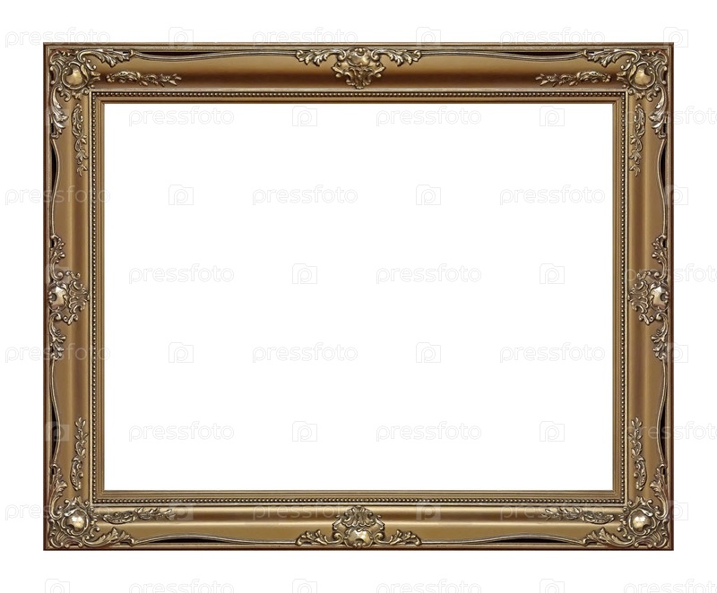 Золотая рама для картин, зеркал или фотографий, изолированных на белом фоне