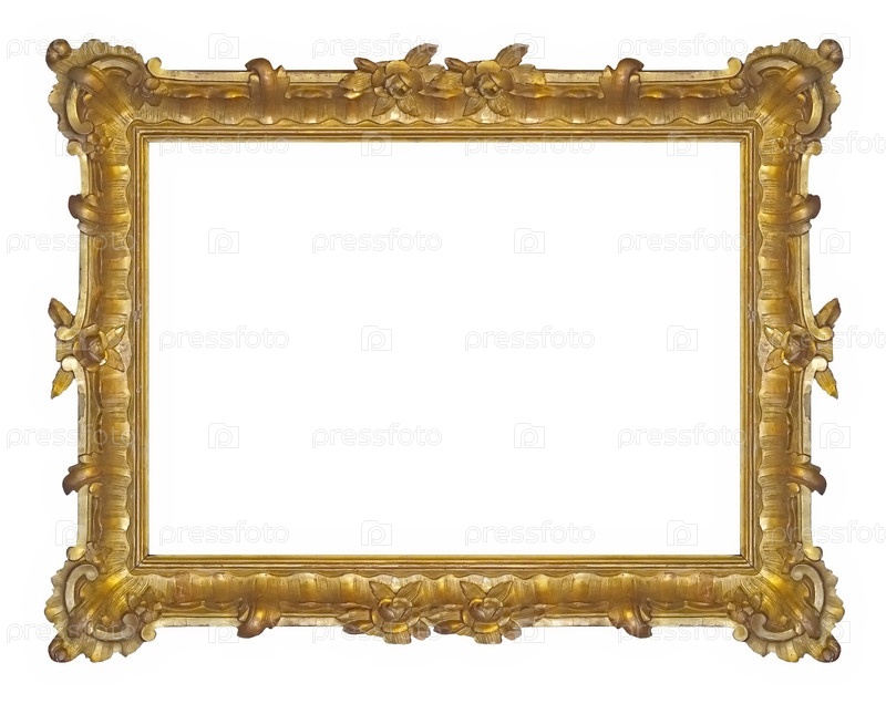 Золотая рама для картин, зеркал или фотографий, изолированных на белом фоне