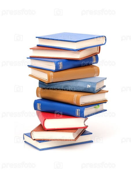 Куча книг в цветных обложках с белыми листами, изолированными на белом фоне