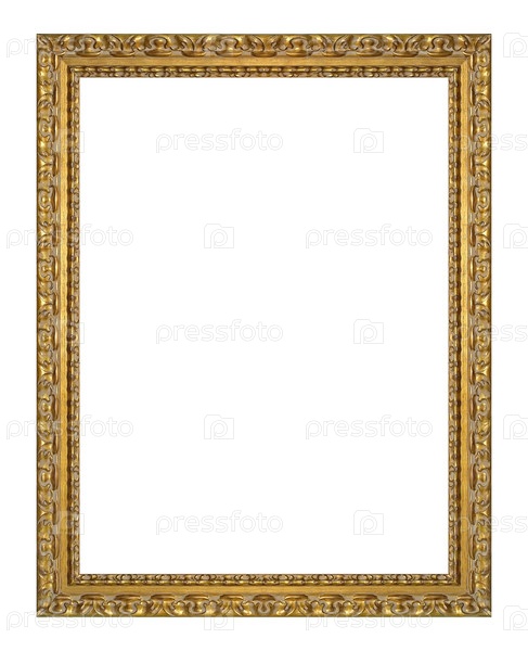 Золотая рама для картин, зеркал или фотографий, изолированных на белом фоне