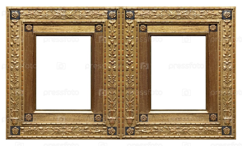 Двойная золотая готическая рама (диптих) для картин, зеркал или фотографий, выделенных на белом фоне