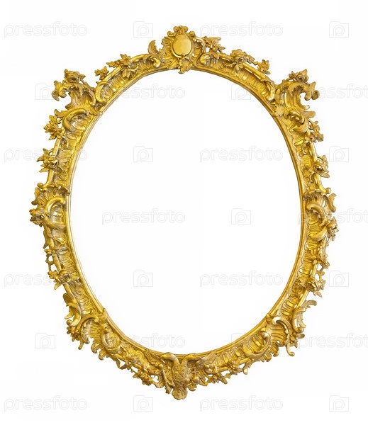 Золотая овальная рама для картин, зеркал или фотографий, изолированных на белом фоне