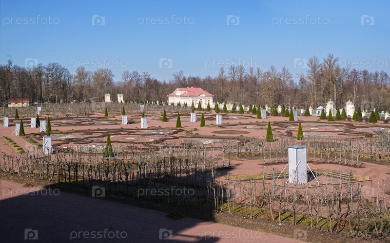 Большой дворец Меншикова, Нижний сад весной, вид на музей Дома картин