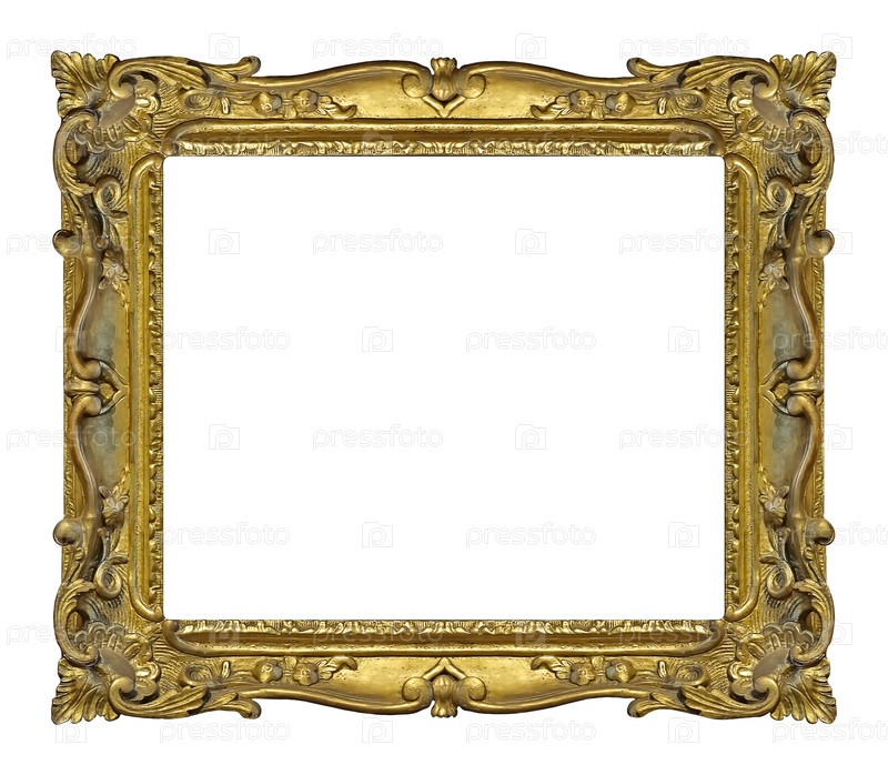 Золотая рама для картин, зеркал или фотографий, изолированная на белом фоне