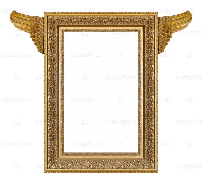 Золотая рама для картин, зеркал или фотографий, изолированных на белом фоне