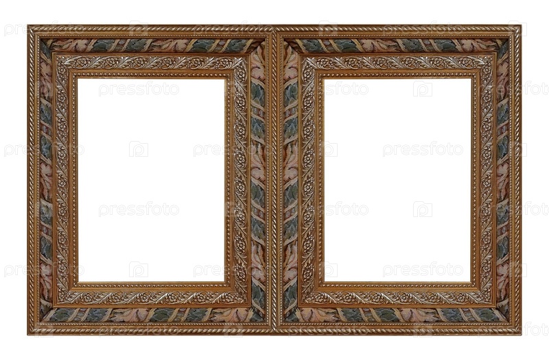 Двойная деревянная рама (диптих) для картин, зеркал или фотографий, изолированных на белом фоне
