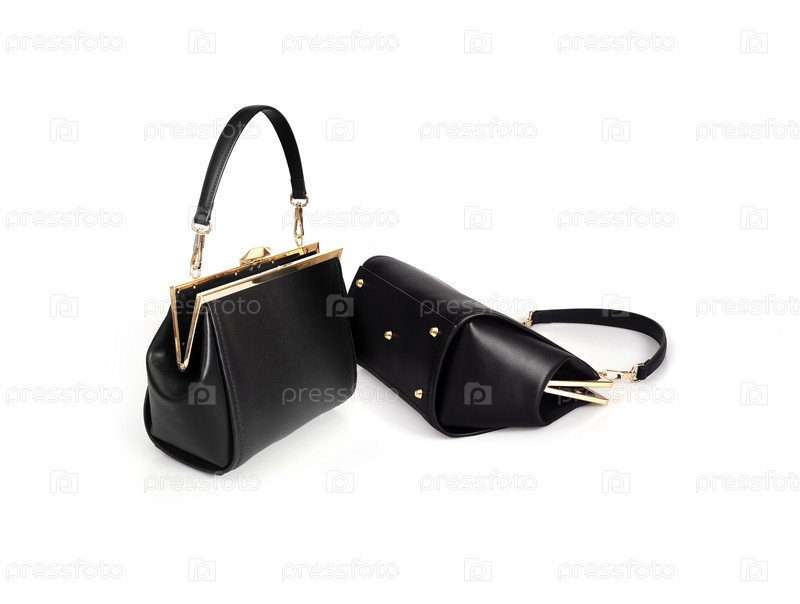 Элегантная маленькая черная сумка (ретикула) с золотым замком, изолированной на белом фоне